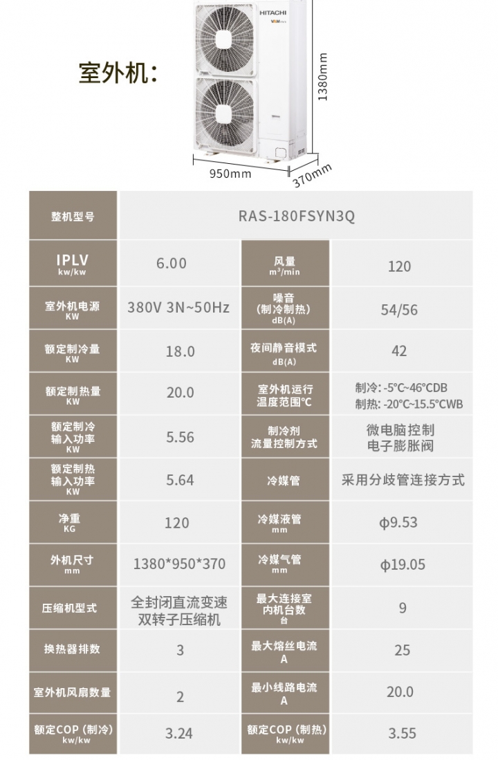 一拖六-小7匹别墅家装-日立中央空调-RAS-180FSYN3Q