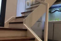 105户型木楼梯美国红橡玻璃扶手款