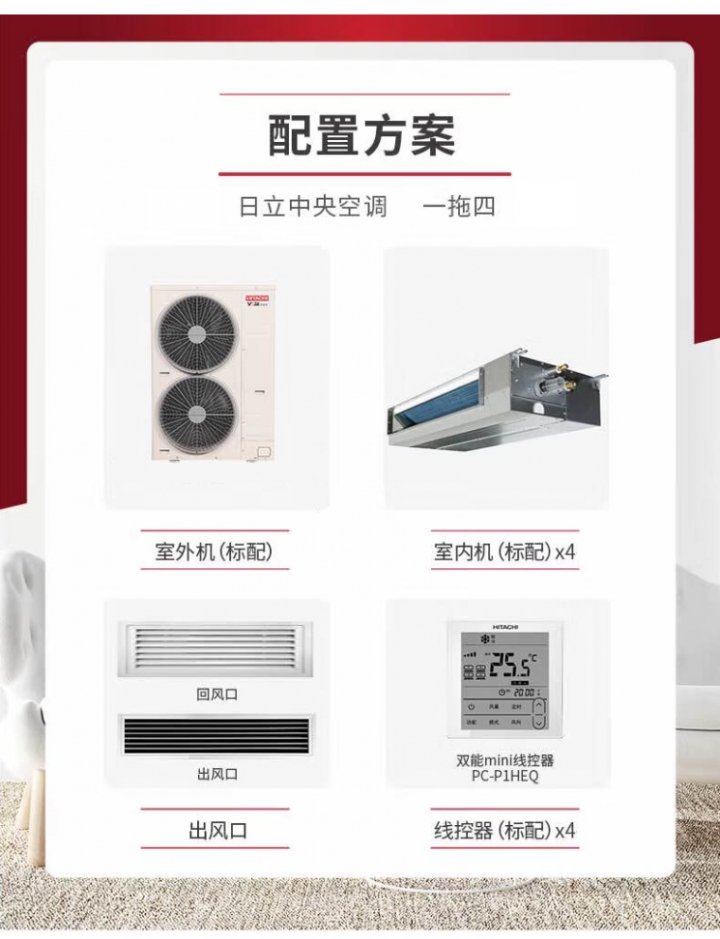 Hitachi/日立中央空调 一拖四 家用中央空调定制